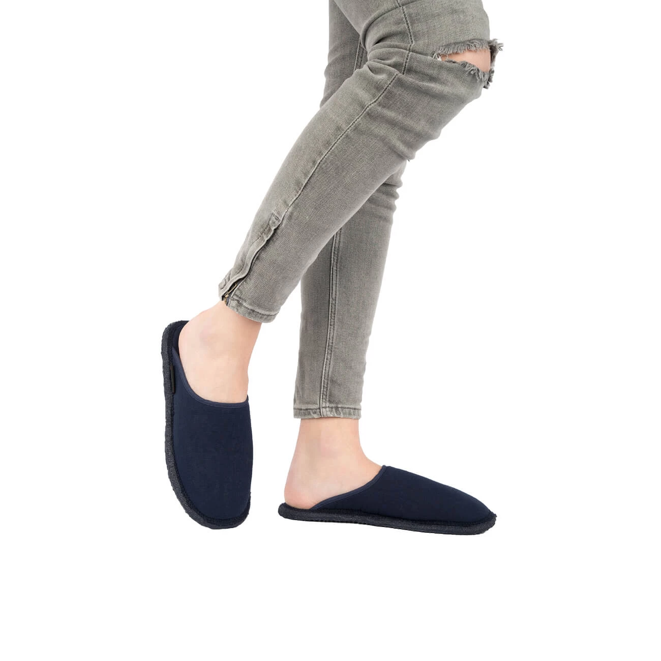 This slipper, designed to slip on and off quickly, is both chic and timeless. The high-quality cotton materials and the soft, non-slip natural latex sole make this slipper classic particularly comfortable. Available in two different colours.